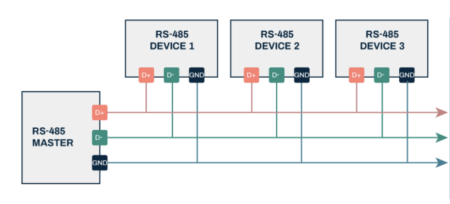 RS-485 allows multiple devices to share the same two-wire communication line.