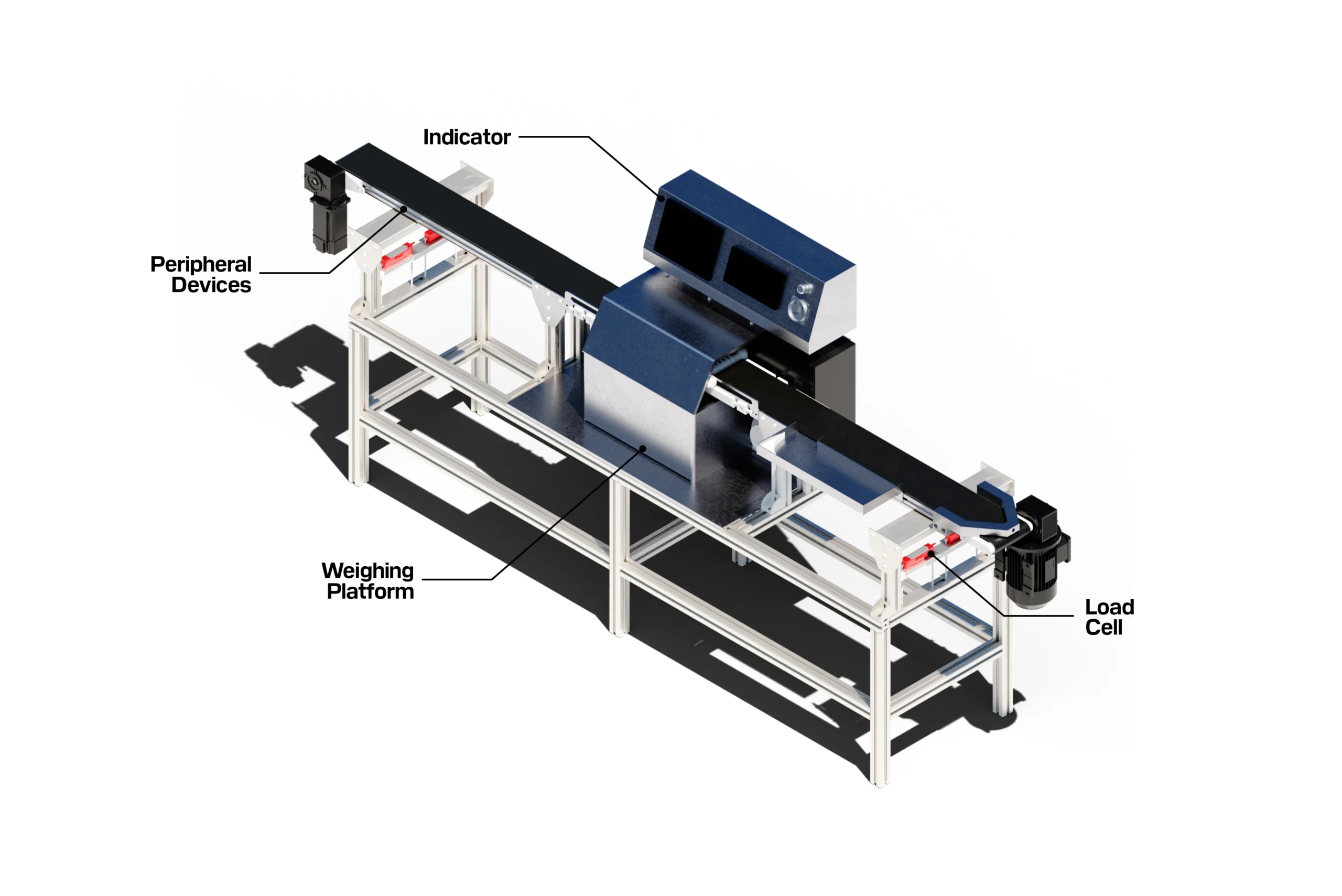 A dynamic weighing system is typically comprised of mechanically optimized weighing platforms, one or more high-speed load cells, a real-time indicator or PLC interface, and peripheral devices related to the assembly line.