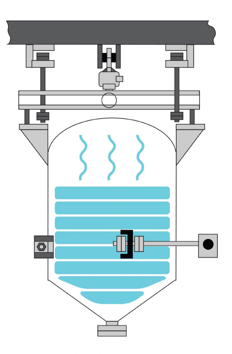 In a suspended configuration – where the vessel hangs from load cells, such as ingredient hoppers or smaller batch hoppers, allowing gravity to act directly on the load cells.