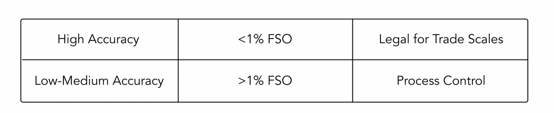 Accuracy in a dynamic weighing application is a combination of sensor performance, mechanical structure design, signal processing, and operating environment conditions. Unlike static scales where the object is at rest, the weighing window in a dynamic application is very short, oftentimes less than a fraction of a second. Accuracy classes, while not entirely quantified, typically fall into two categories: legal for trade, and process control.