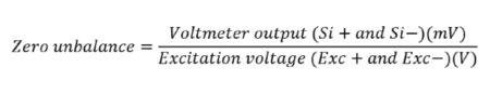Then, calculate the zero unbalance of the load cell as Voltmeter output(mV)/supply voltage.