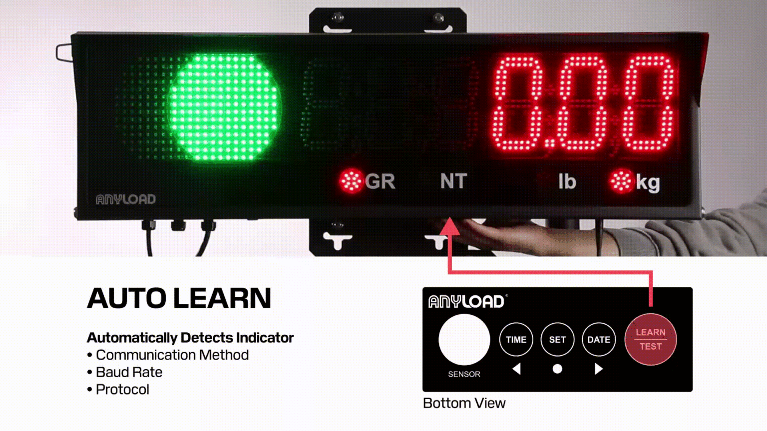 Auto Learn feature of Anyload’s Remote Display — Simply one click away to automatically detect and configure communication settings with your weighing indicator for fast & easy setup.