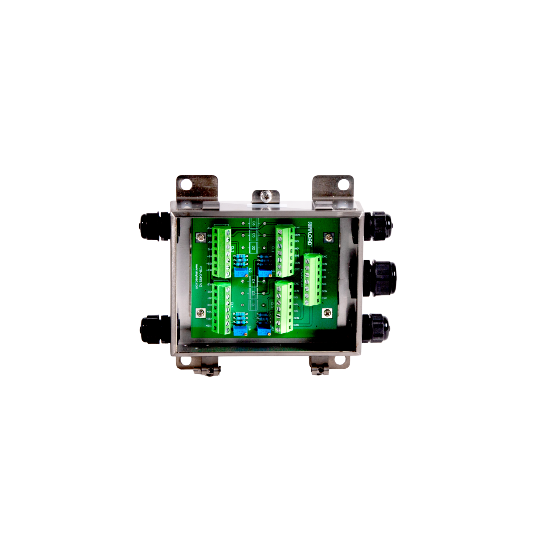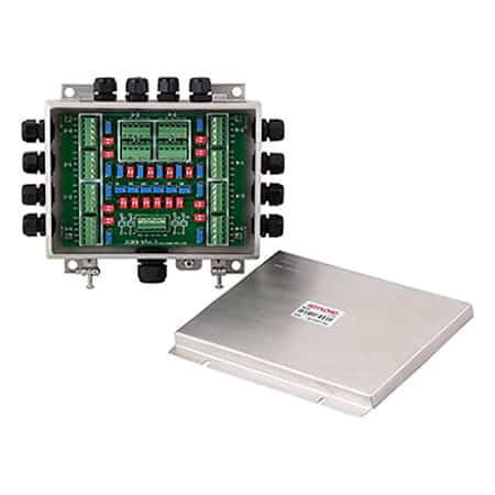 ANYLOAD J04EP-E、J04SP-E 接线盒与求和接线盒可接收来自多个称重传感器的输入信号, 并将生成的信号汇总成单一输出, 以确保实现精确的多传感器平衡调整。J04EP-E、J04SP-E 安装在增强聚酯玻璃纤维材质的外壳内, 该外壳专为防止结露和海水损坏而特制。它设计用于连接两到八个并行的称重传感器, 并且带有一个扩展端口, 可用于为额外的接线盒布线。J04EP-E、J04SP-E 称重传感器接线盒通过快速可拆的称重传感器连接器以及我们的固定螺丝设计来固定盖子, 易于安装。该型号配备了防雷 / 过压保护装置。